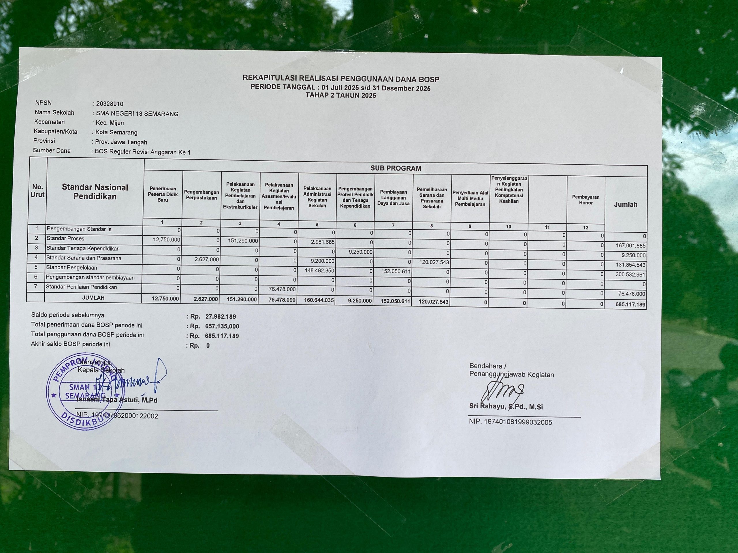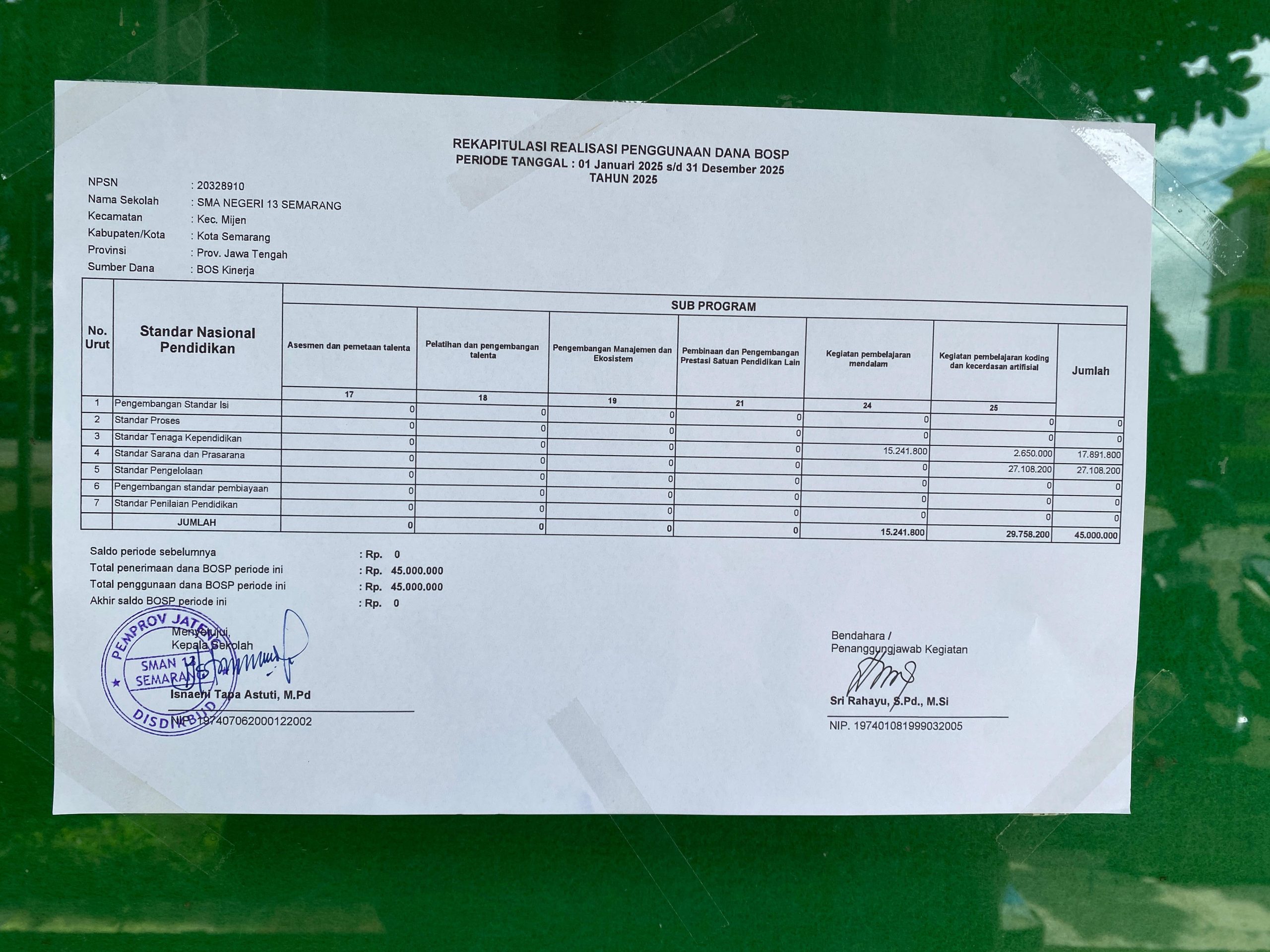Rekapitulasi Realisasi Pengajuan Dana BOSP Periode 1 Januari 2025 s/d 31 Desember 2025